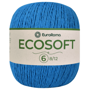 O Barbante EuroRoma Ecosoft Nº 6 oferece excelente rendimento e uniformidade na espessura. Com composição mista de algodão e fibras têxteis recicladas, possui torção média e toque macio, ideal para trabalhos em crochê, tricô e tecelagem. O título 8/12 indica 8 cabos torcidos em espessura padrão 12, garantindo robustez sem comprometer a leveza das peças.