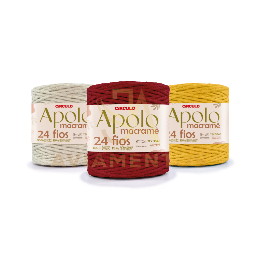 Com 24 cabos que garantem mais definição e resistência, Apolo Macramê oferece um acabamento perfeito para os seus projetos. Feito de algodão, com 85% de sua composição, é a escolha natural para quem valoriza a sustentabilidade sem abrir mão da qualidade. O fio está disponível em 16 cores vibrantes, permitindo uma infinidade de combinações para as suas criações em macramê, crochê e tricô.