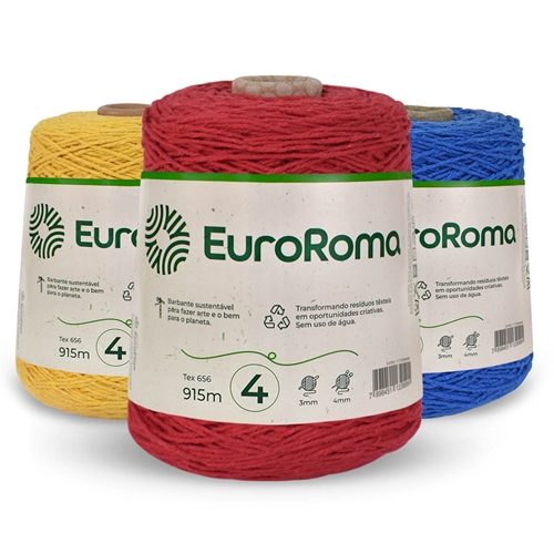O talento e a criatividade do artesão se transformam em peças exclusivas com o barbante EuroRoma. Produzidos de forma sustentável, estes barbantes apresentam qualidade, beleza e versatilidade. Em sua versão de 600g, oferece bom rendimento e versatilidade.