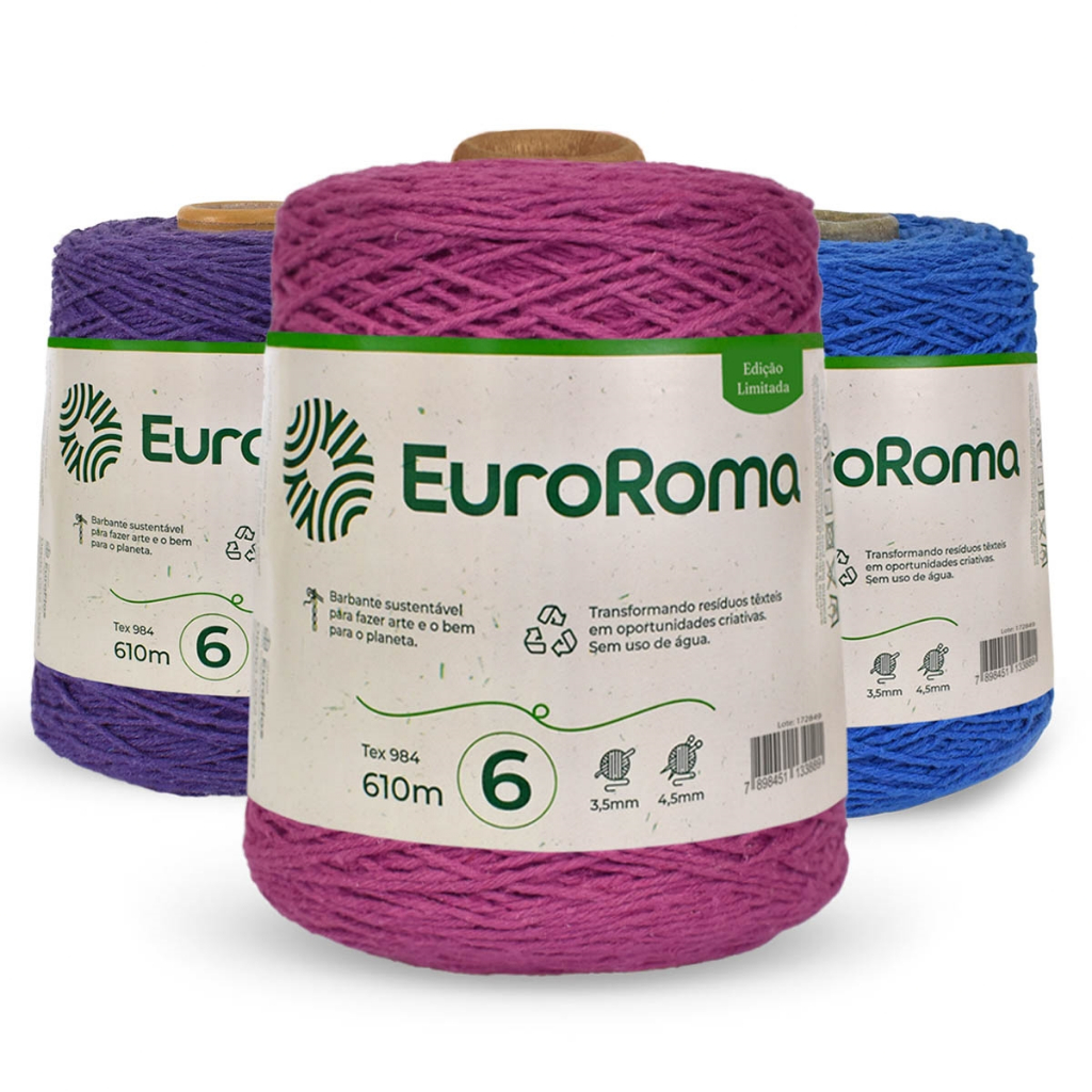O talento e a criatividade do artesão se transformam em peças exclusivas com o barbante EuroRoma. Produzidos de forma sustentável, estes barbantes apresentam qualidade, beleza e versatilidade. Em sua versão de 600g, oferece bom rendimento e versatilidade.