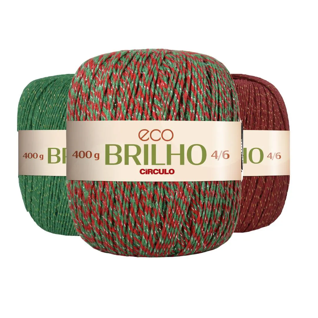 Eco Brilho é um barbante diferenciado, que vai trazer mais sofisticação e agregar valor aos seus designs de decoração. Ele é composto por algodão, outras fibras e, como o próprio nome diz, um toque de brilho proporcionado pela fibra lurex. Ela dá um efeito ponto de luz incrível nas peças.