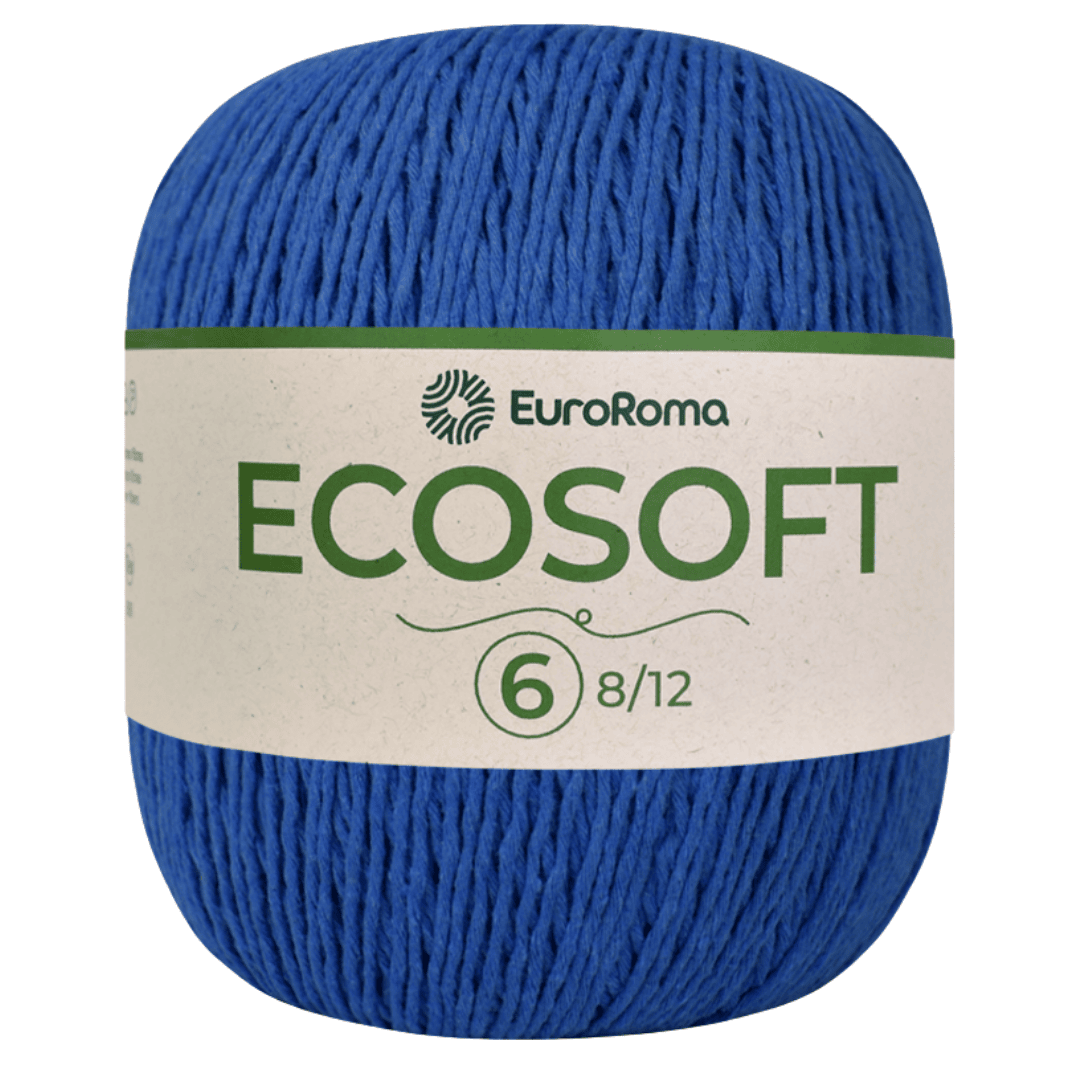 O Barbante EuroRoma Ecosoft Nº 6 oferece excelente rendimento e uniformidade na espessura. Com composição mista de algodão e fibras têxteis recicladas, possui torção média e toque macio, ideal para trabalhos em crochê, tricô e tecelagem. O título 8/12 indica 8 cabos torcidos em espessura padrão 12, garantindo robustez sem comprometer a leveza das peças.
