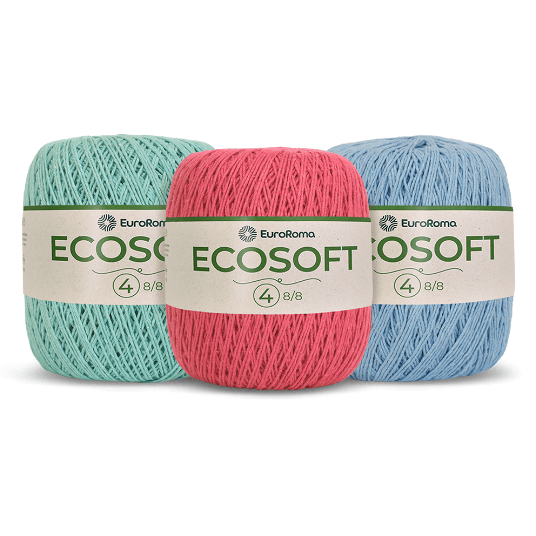 O EuroRoma Ecosoft mostra que é possível unir maciez e sustentabilidade para criar um fio ecológico muito confortável de usar. Crie belas peças decorativas com este fio excepcionalmente versátil, além de incríveis acessórios de moda. A titulagem 8/8 resulta em uma espessura similar ao fio nº 4, que através de uma estrutura moderna e diferenciada resulta em uma textura muito suave, leve e gostosa de trabalhar.