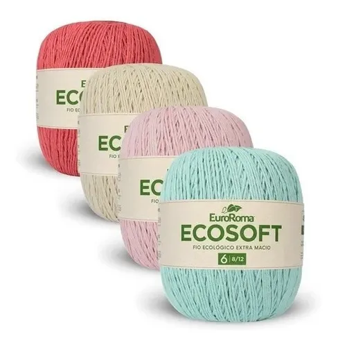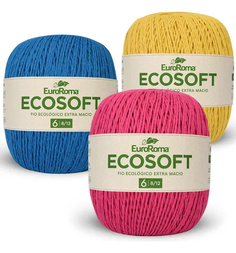 O EuroRoma Ecosoft mostra que é possível unir maciez e sustentabilidade para criar um fio ecológico muito confortável de usar. Crie belas peças decorativas com este fio excepcionalmente versátil, além de incríveis acessórios de moda. A titulagem 8/12 resulta em uma espessura similar ao fio nº 6, que através de uma estrutura moderna e diferenciada resulta em uma textura muito suave, leve e gostosa de trabalhar.