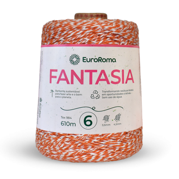 Barbante Fantasia EuroRoma N°6 4/6 – Cor Branco e Laranja (5024)