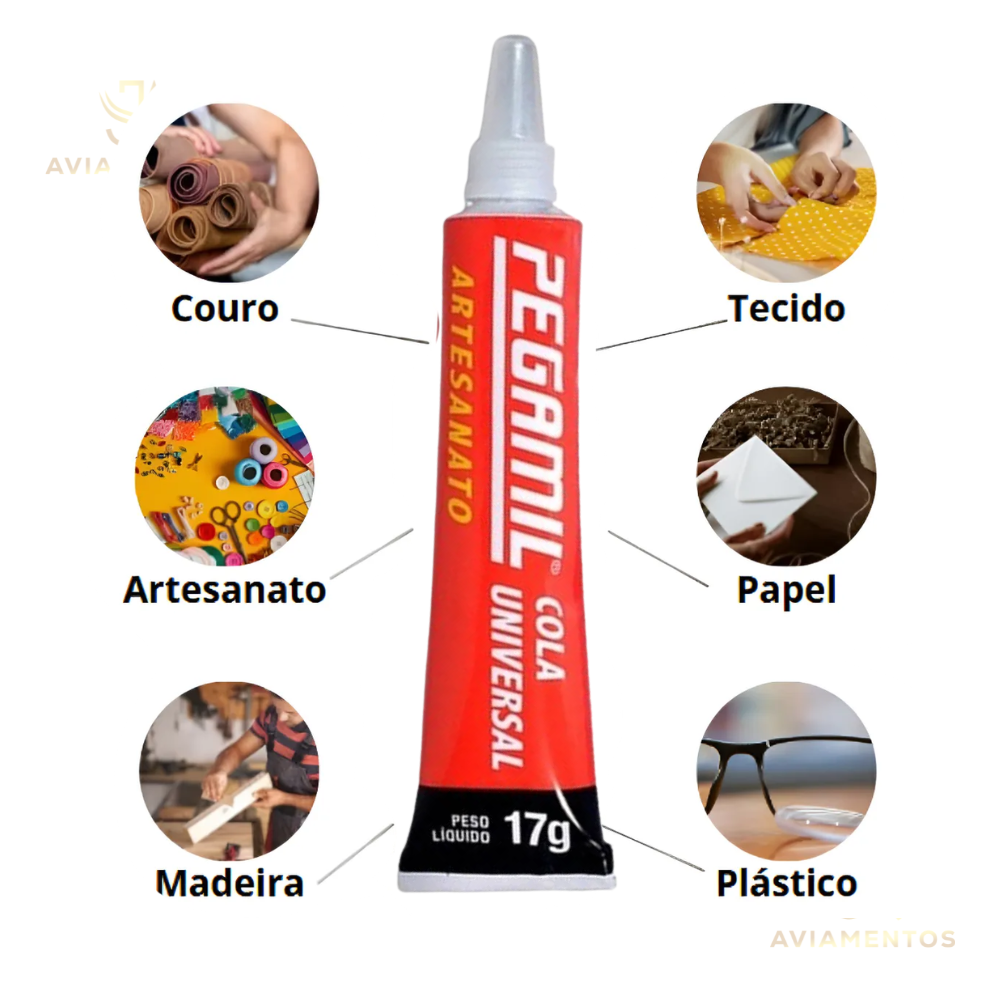 A Cola Universal Pegamil é perfeita para quem busca uma solução multiuso e eficiente em projetos artesanais. Muito usada por artesãos, ela proporciona secagem rápida, aderência segura e excelente rendimento em diversas superfícies, como EVA, tecido, papel, couro, plástico, madeira e muito mais!