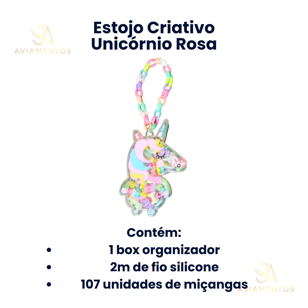Estojo Criativo Unicórnio Rosa Linhas Douradas
