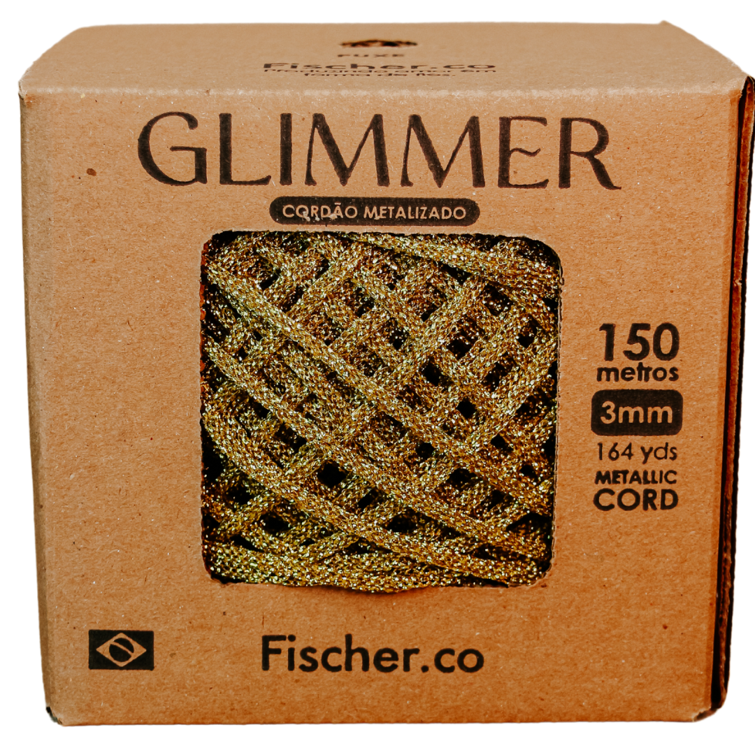 O Cordão Glimmer da Fischer é um fio agulhado perfeito para produções de peças em crochê, macramê e artesanato em geral, esse cordão é metalizado e se torna uma verdadeira carta na manga na hora de criar peças que roubam a cena. Possuem um visual super ousado e chamativo, porém, ainda assim são fáceis de usar e compor. O Glimmer vem na caixa ergonômica super versátil para você usar, contendo 150 metros e 3mm de espessura, e com a elasticidade na medida certa que só os agulhados da Fischer possuem. Ele é leve e gostoso de trabalhar e vai te surpreender com o resultado. Esse fio é inspirado em tendências gringas de metalizado, e é composto 100% de poliéster com fios de Luréx. Deixando ele com uma pegada super moderna e vibe futurista.