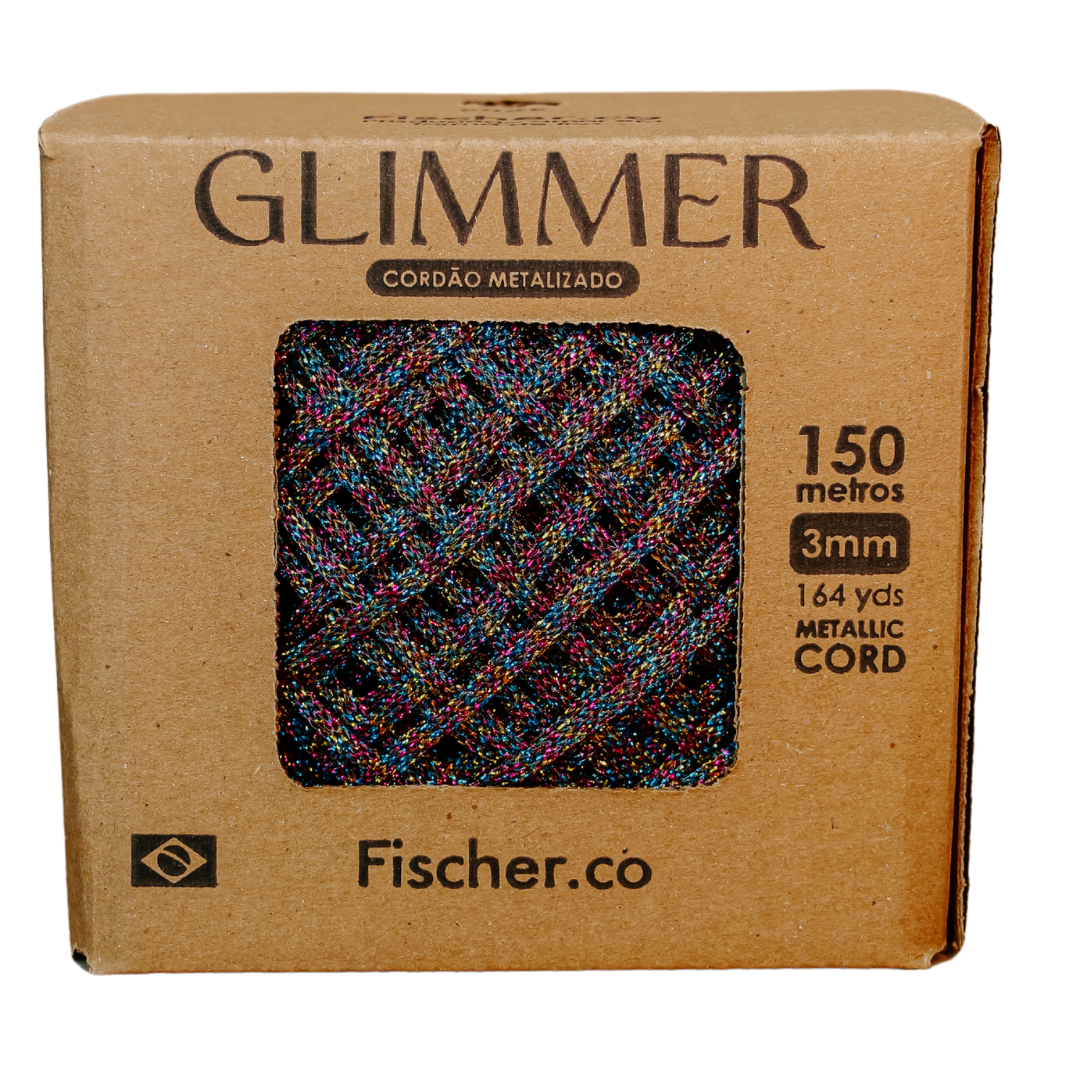 O Cordão Glimmer da Fischer é um fio agulhado perfeito para produções de peças em crochê, macramê e artesanato em geral, esse cordão é metalizado e se torna uma verdadeira carta na manga na hora de criar peças que roubam a cena. Possuem um visual super ousado e chamativo, porém, ainda assim são fáceis de usar e compor. O Glimmer vem na caixa ergonômica super versátil para você usar, contendo 150 metros e 3mm de espessura, e com a elasticidade na medida certa que só os agulhados da Fischer possuem. Ele é leve e gostoso de trabalhar e vai te surpreender com o resultado. Esse fio é inspirado em tendências gringas de metalizado, e é composto 100% de poliéster com fios de Luréx. Deixando ele com uma pegada super moderna e vibe futurista.