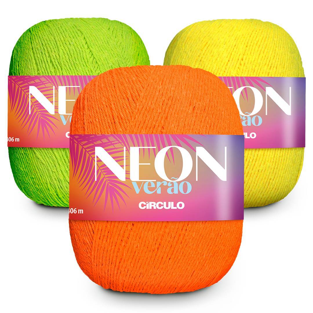 O fio NEON VERÃO possui cores vibrantes de neon e tem tudo a ver com o verão! Com espessura média, o fio rende bem e tem ótimo caimento. Não importa a técnica, sendo crochê ou tricô, as peças ficarão mais valorizadas com esse fio que veio para revolucionar o trabalho feito à mão.
