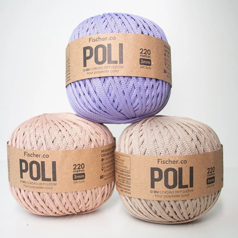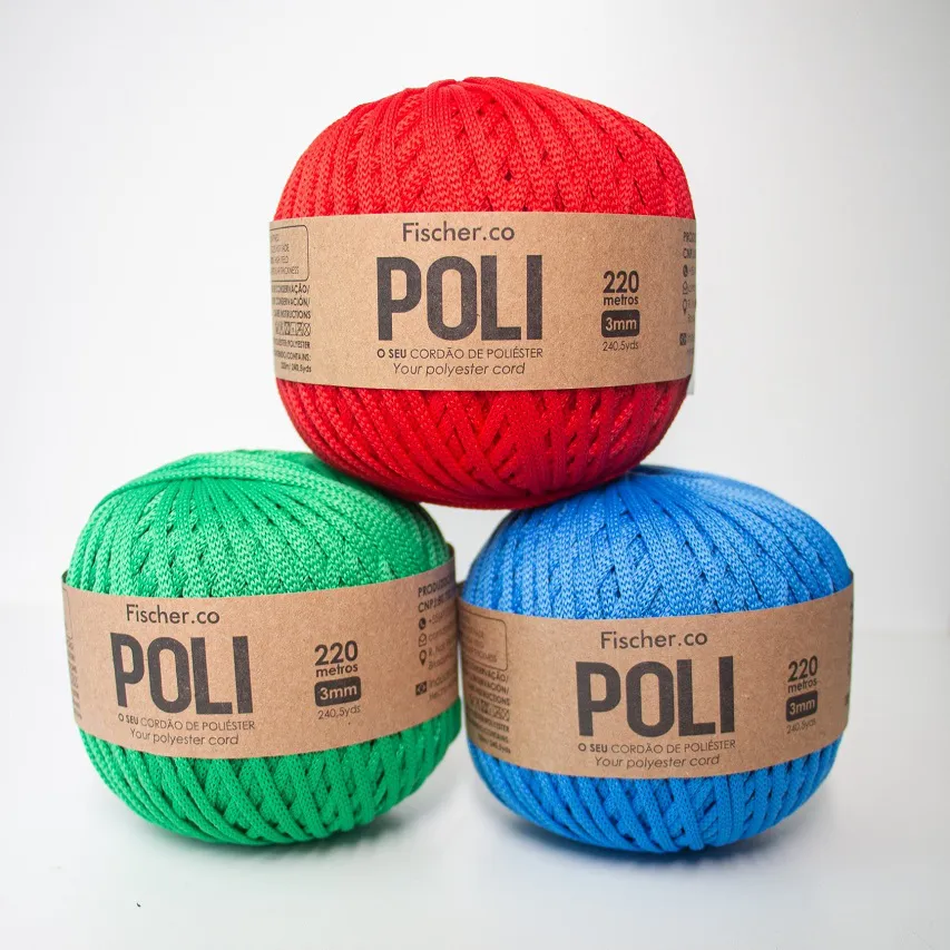 O Fio Poli 3mm veio como uma evolução do Fio de Poliéster, em um equilíbrio perfeito entre leveza e estrutura. Sua melhor característica é sua leveza e maciez ao crochetar aliada a grande estrutura nas peças finais. Produzido com 100% Poliéster de altíssima qualidade. Um fio de extrema elegância e desenvolvido com uma cartela de cores selecionada e assertiva. Seu rendimento é de 220m (rendimento ideal para produção de peças médias – grandes). Ideal para peças como bolsas, sousplast, cachepôs e artesanatos em geral.