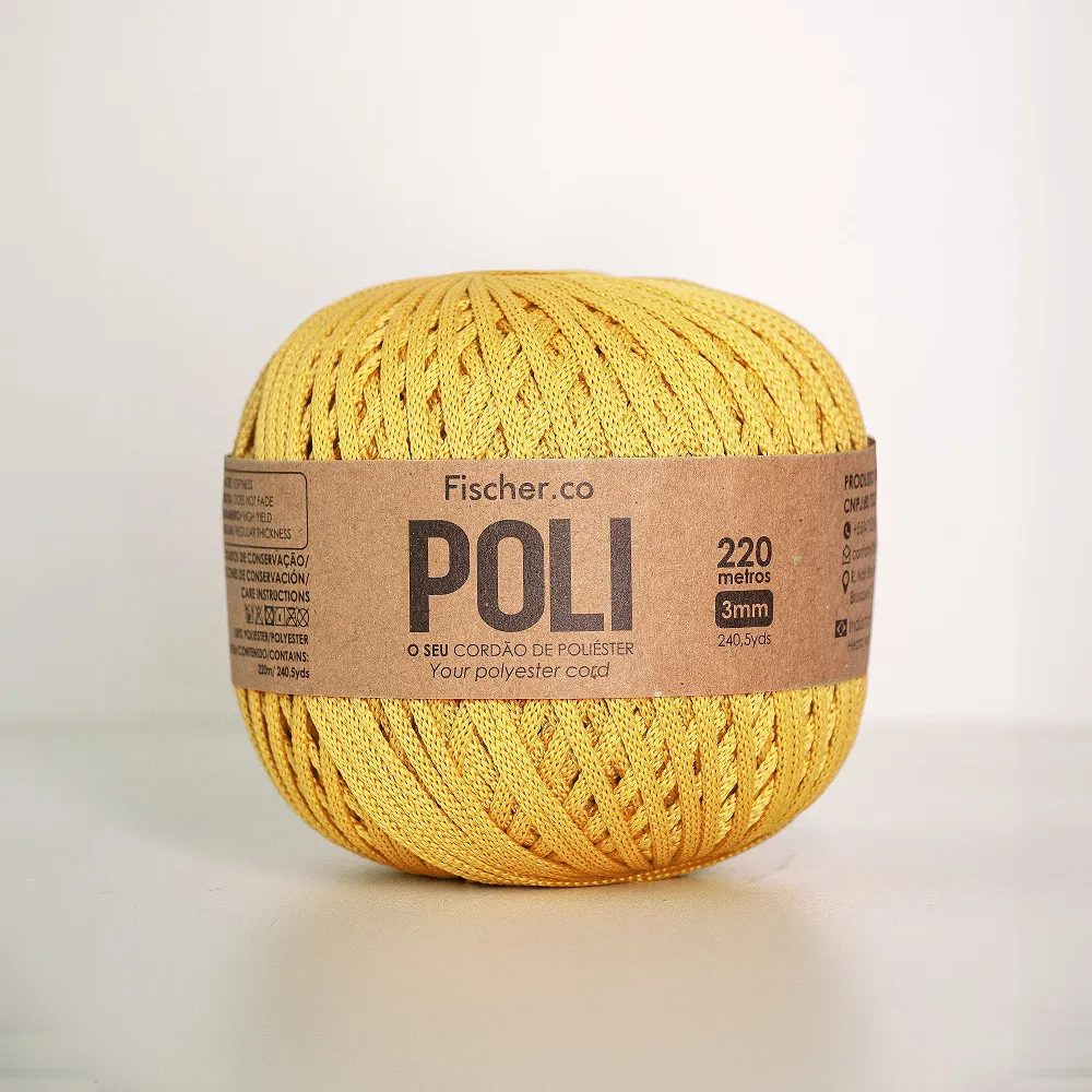 O Fio Poli 3mm veio como uma evolução do Fio de Poliéster, em um equilíbrio perfeito entre leveza e estrutura. Sua melhor característica é sua leveza e maciez ao crochetar aliada a grande estrutura nas peças finais. Produzido com 100% Poliéster de altíssima qualidade. Um fio de extrema elegância e desenvolvido com uma cartela de cores selecionada e assertiva. Seu rendimento é de 220m (rendimento ideal para produção de peças médias – grandes). Ideal para peças como bolsas, sousplast, cachepôs e artesanatos em geral.