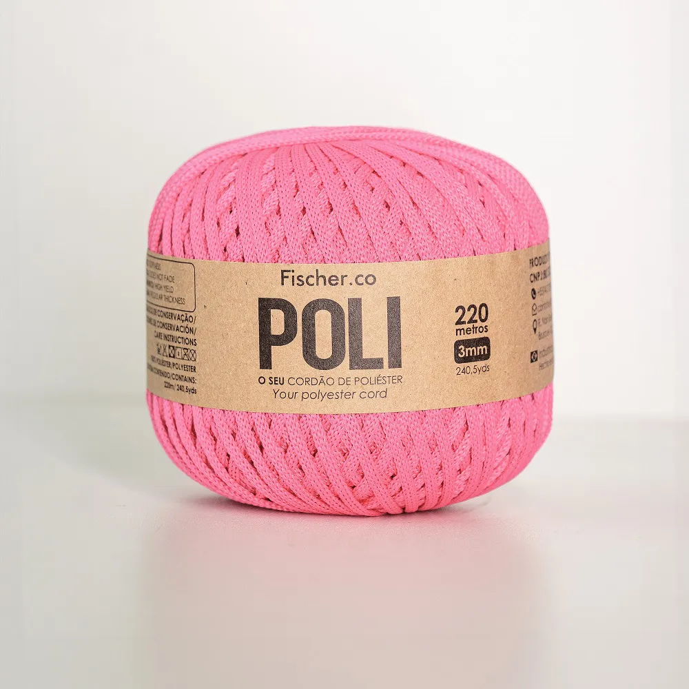 O Fio Poli 3mm veio como uma evolução do Fio de Poliéster, em um equilíbrio perfeito entre leveza e estrutura. Sua melhor característica é sua leveza e maciez ao crochetar aliada a grande estrutura nas peças finais. Produzido com 100% Poliéster de altíssima qualidade. Um fio de extrema elegância e desenvolvido com uma cartela de cores selecionada e assertiva. Seu rendimento é de 220m (rendimento ideal para produção de peças médias – grandes). Ideal para peças como bolsas, sousplast, cachepôs e artesanatos em geral.