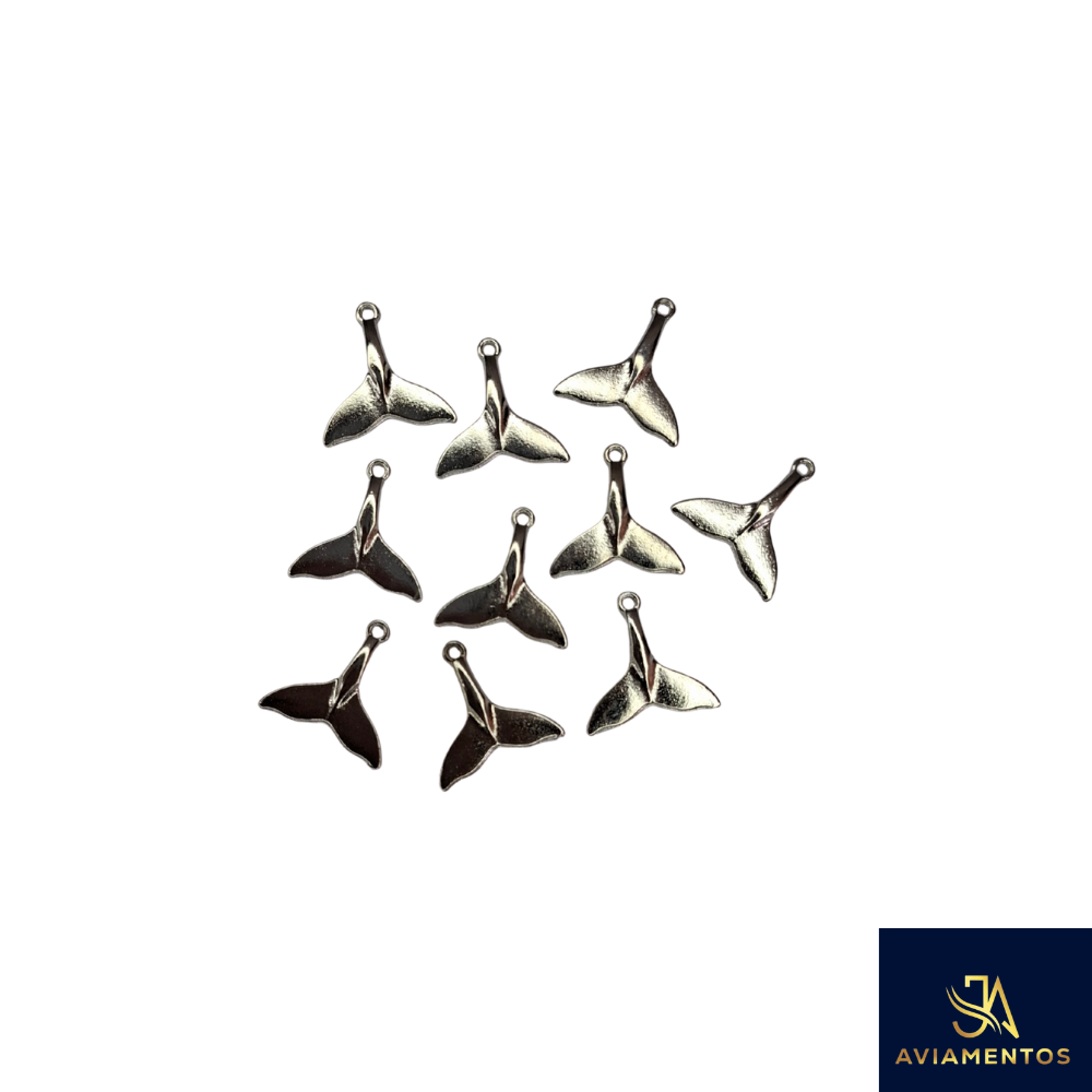 Transforme suas criações com um toque mágico! Este kit contém 10 unidades de pingentes em formato de cauda de sereia, confeccionados em metal zamac de alta qualidade, com acabamento prateado brilhante que garante durabilidade e charme.