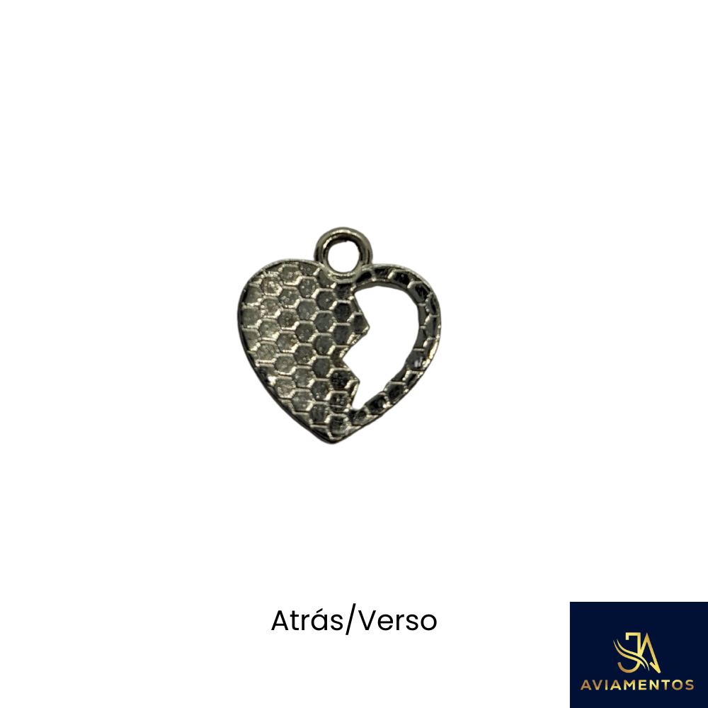 Seja o primeiro a avaliar “Kit 10 Pingentes Coração Partido 13x14mm – Metal Prateado com Resina Rosa”