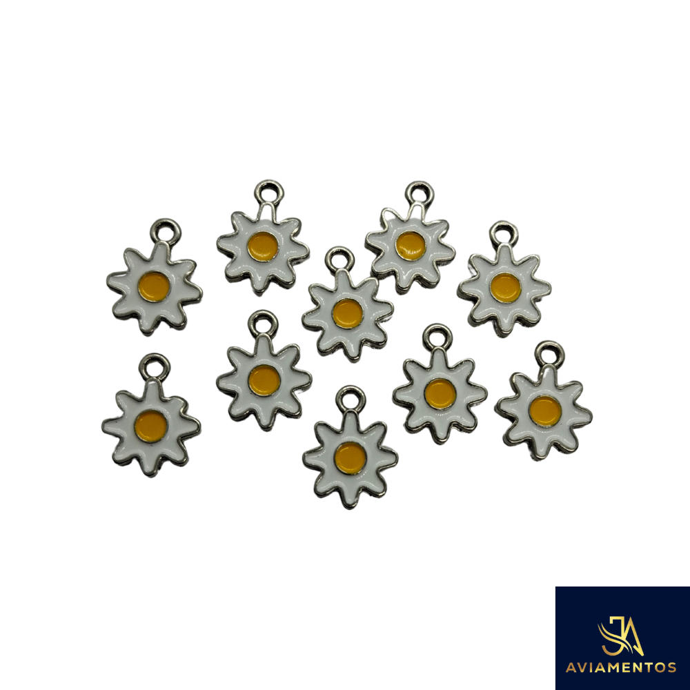 Dê vida às suas criações com este delicado kit de 10 pingentes em formato de flor, perfeito para quem ama detalhes florais e acabamento refinado!