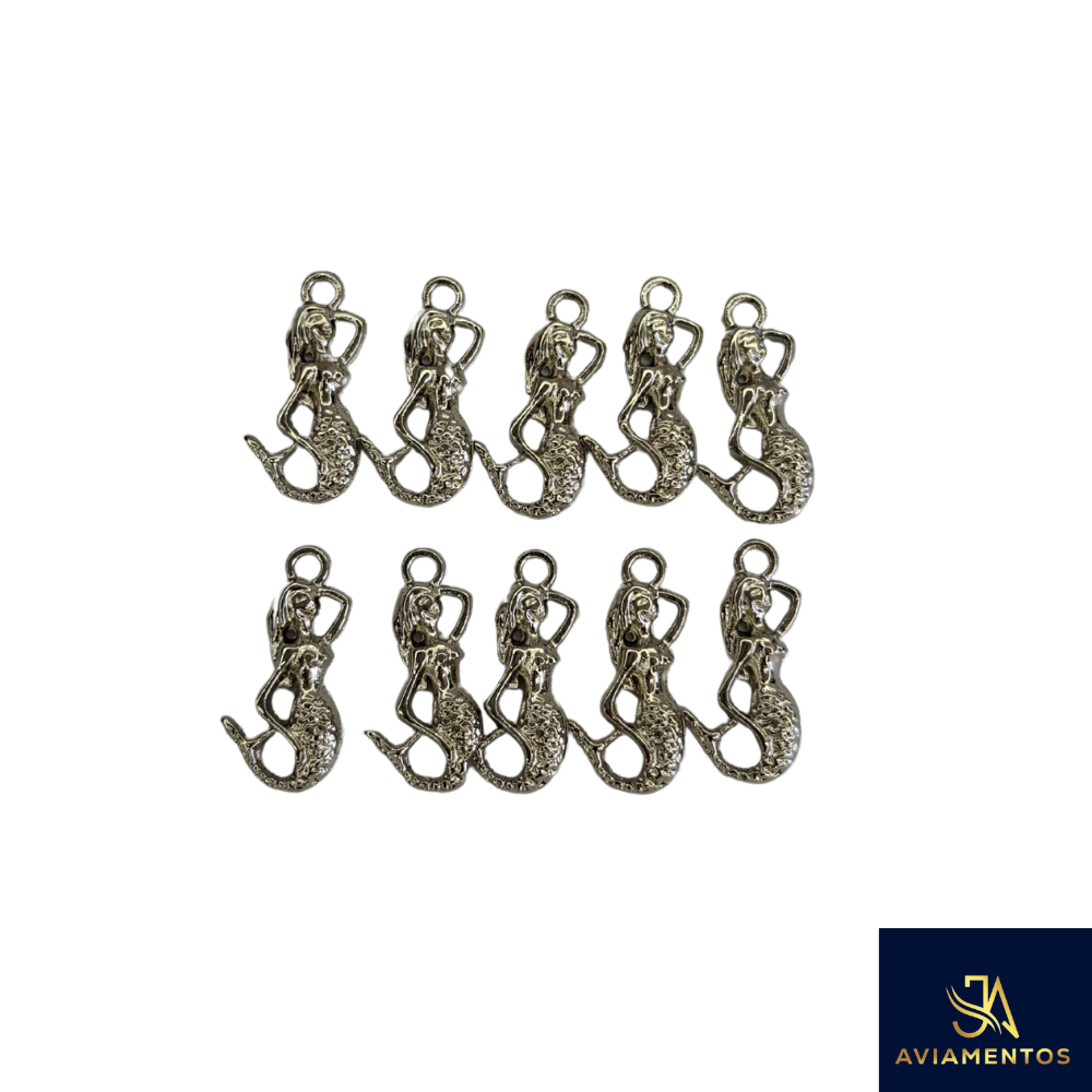 Encante suas criações com o charme místico do mar! Este kit contém 10 pingentes de sereia, feitos em metal zamac com acabamento prateado brilhante, perfeitos para dar um toque mágico e delicado às suas peças artesanais.