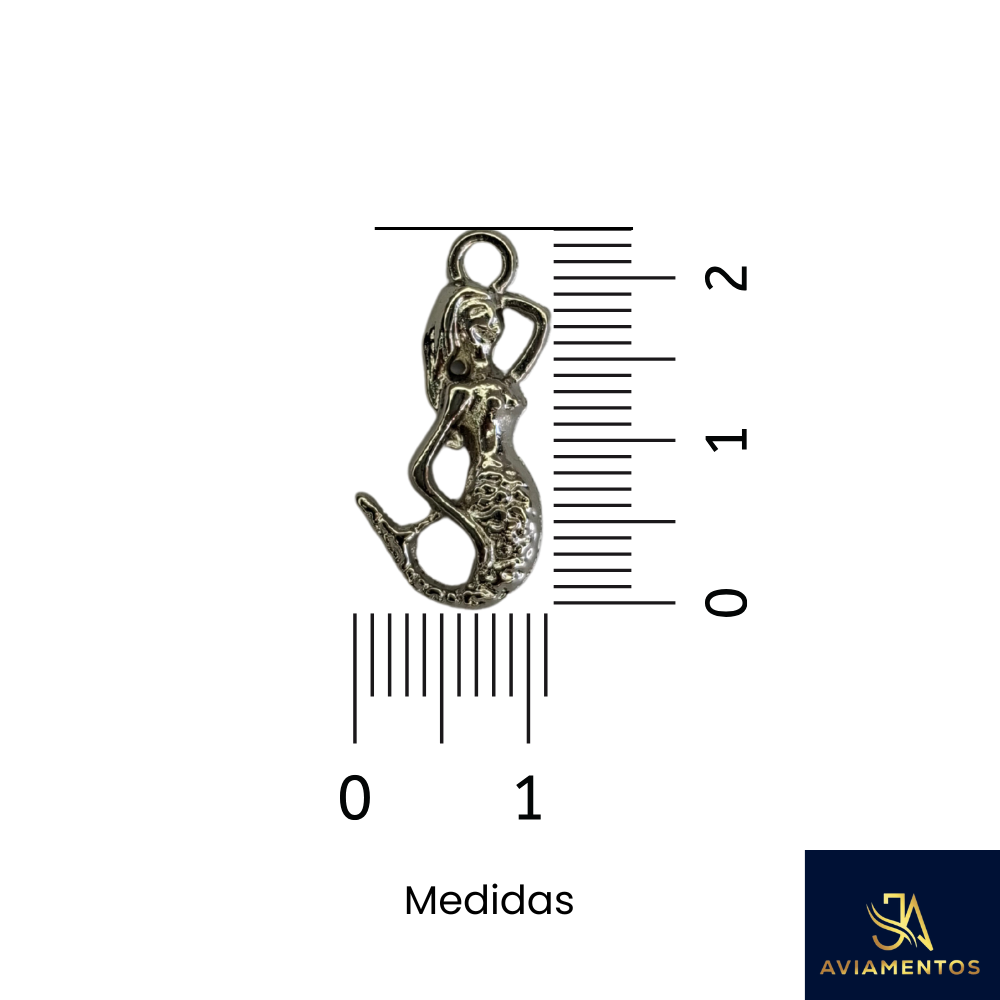 Kit com 10 Pingentes de Sereia em Zamac Prateado – 23x11mm