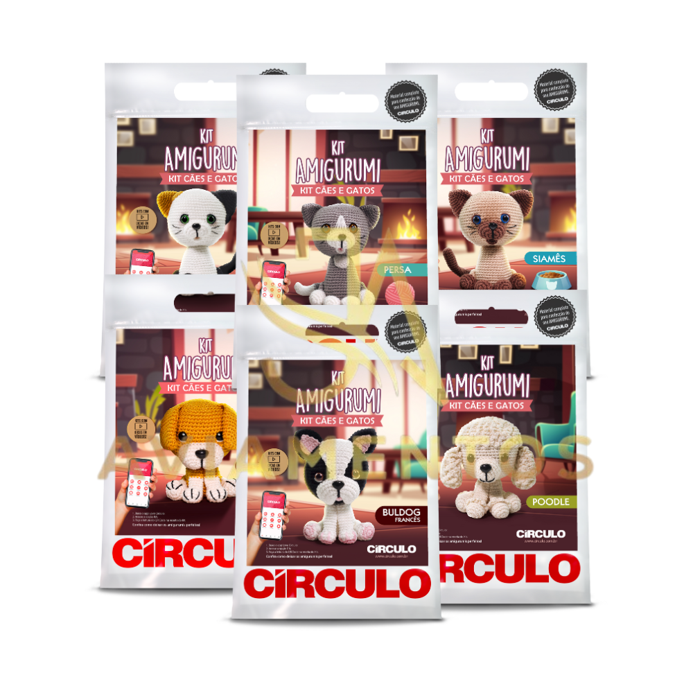 O Kit Amigurumi Cães e Gatos conta com seis modelos lindos e encantadores: Buldog Francês, Caramelo, Malhado, Persa, Poodle e Siamês. Todos os kits contêm todo o material necessário para a produção de amigurumis superfofos dessa turminha animal!