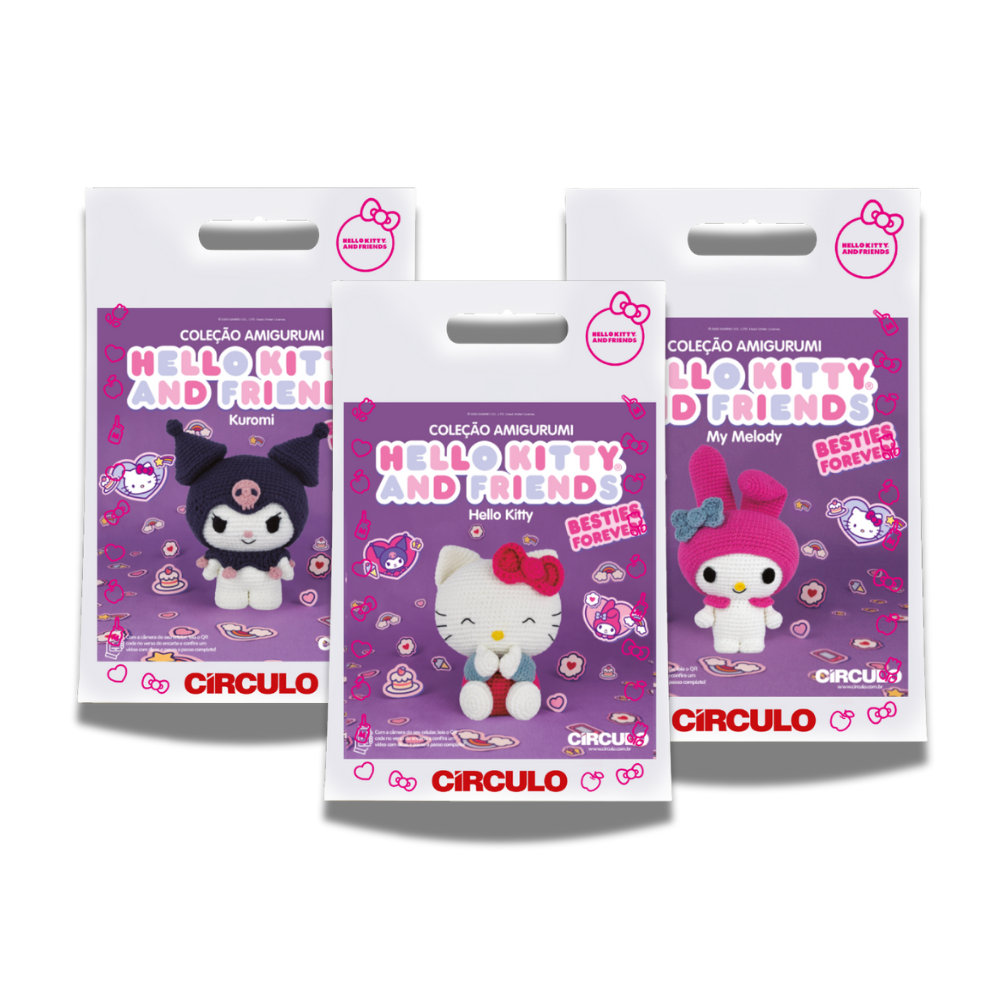 A magia das personagens mais amadas da Sanrio® chegou ao mundo do amigurumi com a nova Coleção Amigurumi – Hello Kitty and Friends! Cada kit completo, feito com Amigurumi Soft, acompanha todos os materiais para confecção de Hello Kitty, My Melody ou Kuromi. Você terá peças com acabamento macio e uniforme!