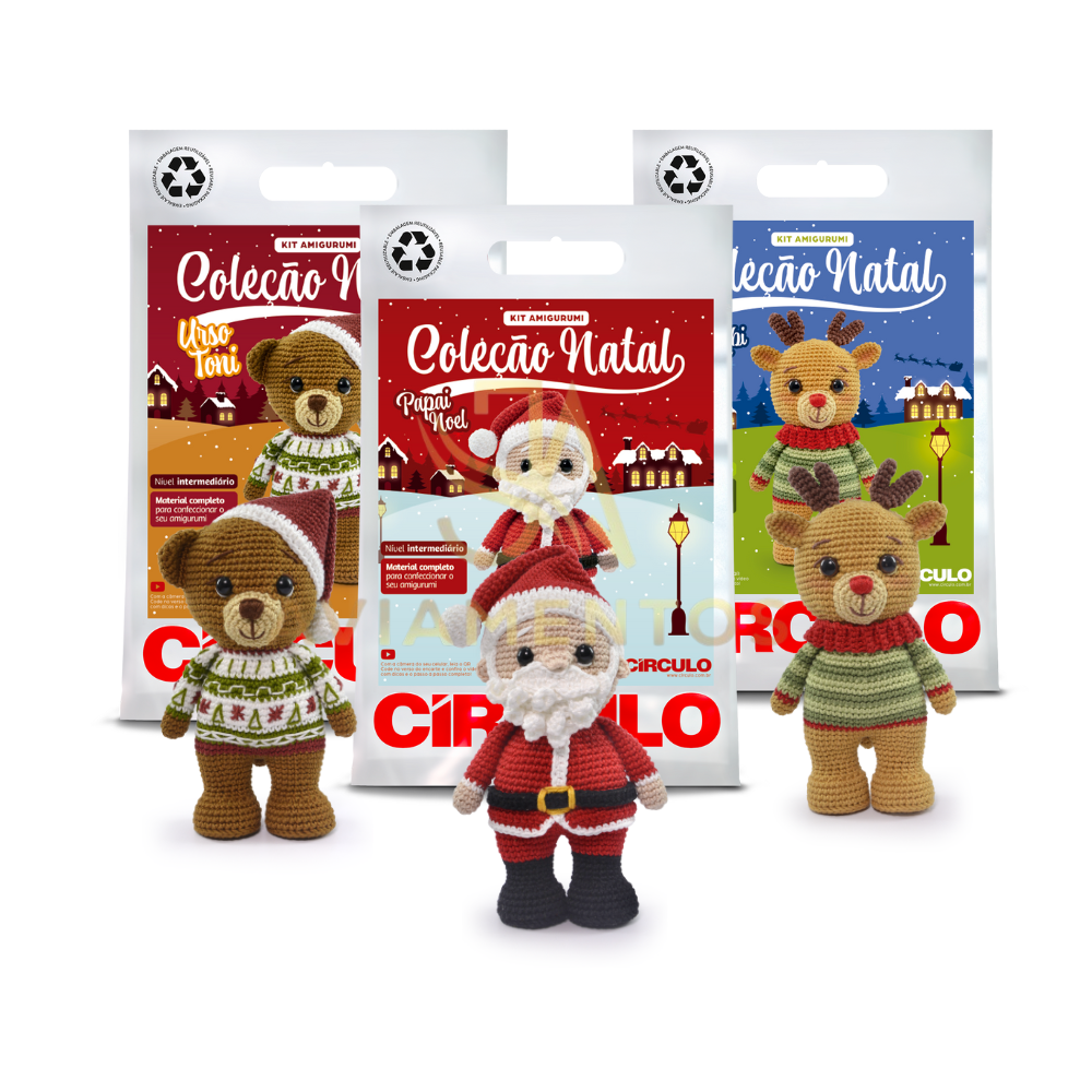 O Kit Amigurumi Natal promete encantar artesãos e apaixonados por decoração natalina. São 3 personagens adoráveis: Papai Noel, Urso Toni e Rena Rubi. O kit reúne todos os materiais necessários para crochetar cada um deles de forma prática e divertida. Perfeito para presentear, decorar, colecionar ou vender, o Kit Amigurumi Natal une o charme das festas com o toque especial do feito à mão.