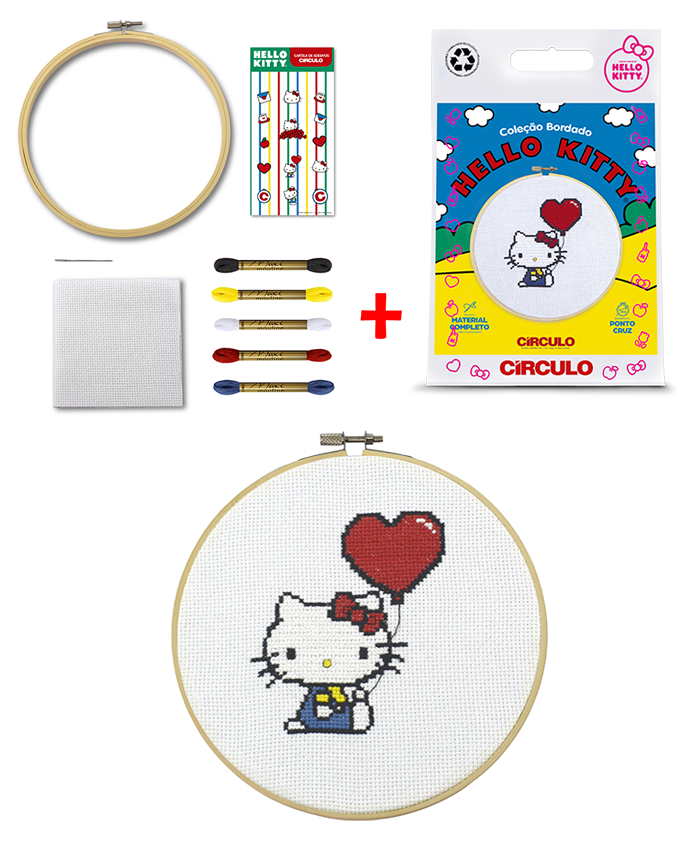 A personagem mais amada do mundo agora pode fazer parte das suas criações com a Coleção Bordado Hello Kitty! Em parceria com a Sanrio, a Círculo traz dois modelos exclusivos em Ponto Cruz – Doces e Coração –, perfeitos para bordar com encanto e muita fofura. Além de todo o material necessário para confeccionar a peça, este kit especial conta com uma sacola personalizada e uma tag exclusiva que garante a originalidade do seu produto, tornando a experiência ainda mais mágica. Seja para presentear, decorar ou colecionar, essa coleção traz o charme atemporal de Hello Kitty para cada ponto do seu bordado.