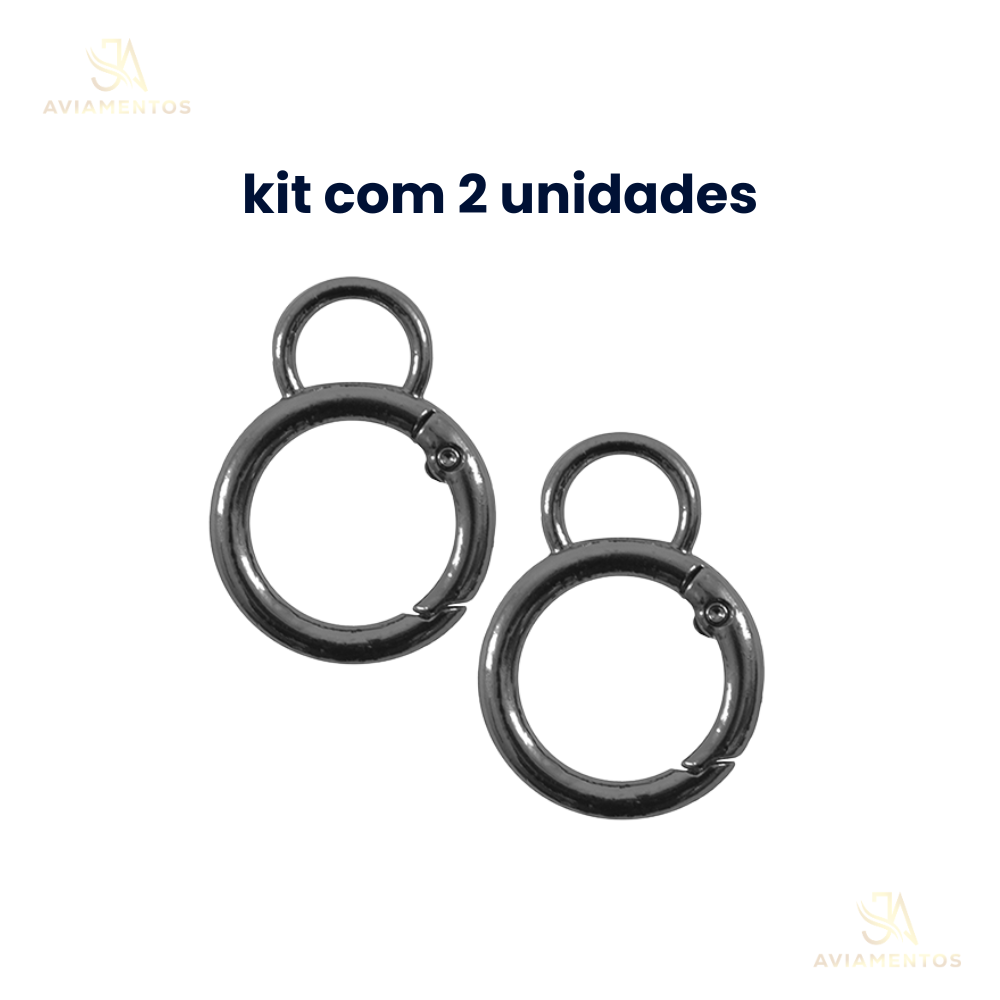 Kit com 2 Mosquetão Bola Preto 27mmX37mm Círculo