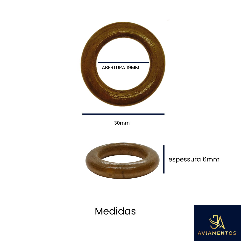 Tamanhos: 30mm total, 19mm de abertura e 6mm de espessura