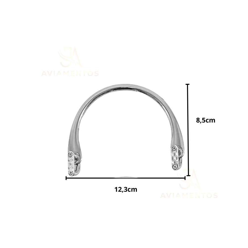 A Alça de Metal Meia Lua vai trazer sofisticação para seus designs de bolsas. Feita de zinco, ela é resistente e prática de incorporar ao seu projeto handmade. Ideal para bolsas de mão.